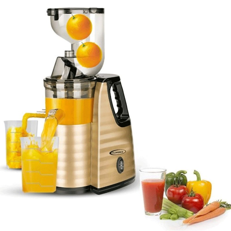 Extracteur De Jus 300W 400ML - Florence HK-423 - Capacité: 400ml - Puissance: 300 Watts - Pièces amovibles pour le nettoyage - Vitesse de rotation: 80 tr/min - Design ultramoderne ergonomique et compact - Pieds antidérapants - Il extrait facilement le jus des fruits et des légumes - Couleur: Doré - Garantie: 1an