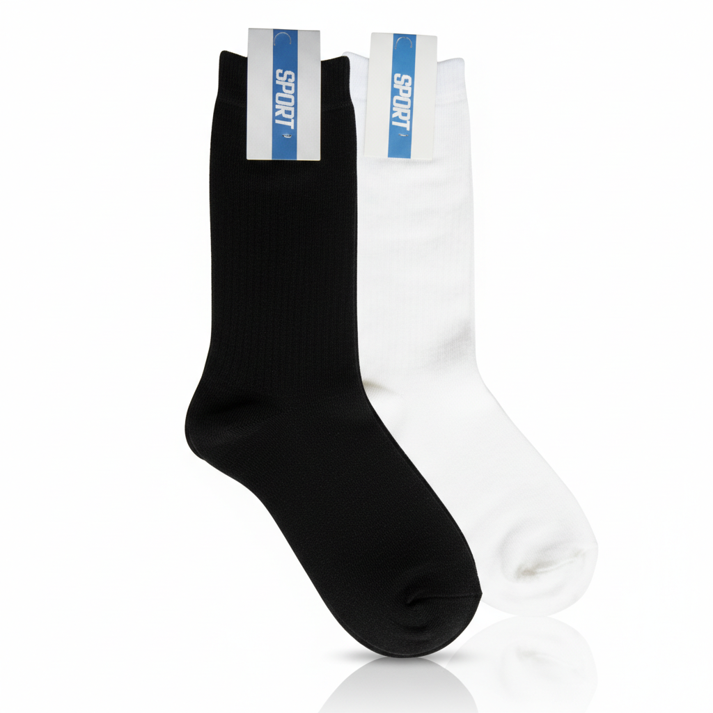 Lot de 6 paires de chaussettes de sport 3 blanches et 3 Noir , confortables et respirantes. Modèles  mi-mollet Idéales pour le sport ou un usage quotidien.