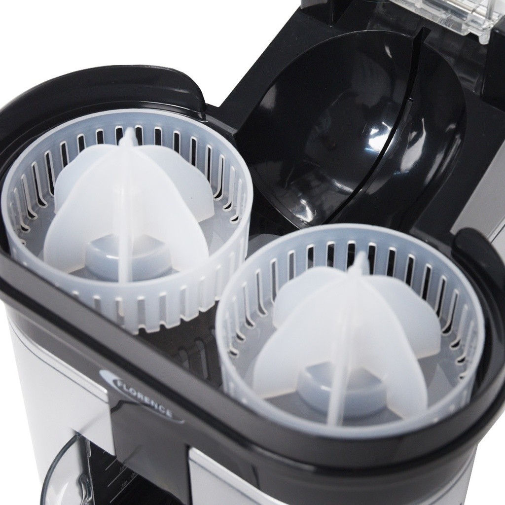 Puissance : 350 W - Moteur : Moteur puissant et efficace pour une extraction rapide et complète du jus Système de Pression : Double pression pour une extraction optimisée - Capacité du réservoir à jus : 500 ml - Capacité du cône : Adapté aux agrumes de toutes tailles (oranges, citrons, pamplemousses) Filtre : Filtre à pulpe amovible et ajustable pour un jus plus ou moins filtré- Matériaux : -Boîtier : Plastique ABS de qualité alimentaire -Cône et filtre : Acier inoxydable pour plus de durabilité - Entretien : -Pièces amovibles, compatibles lave-vaisselle (cône, réservoir, filtre) -Facile à nettoyer après chaque utilisation - Couleur : Blanc avec accents métalliques - Garantie : 1an