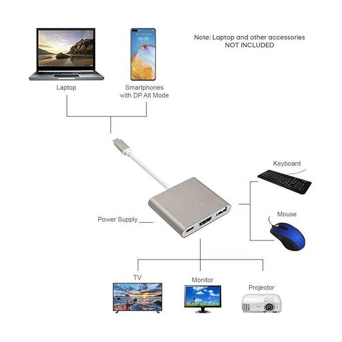 • Large Gamme d'Appareils USB-C : Compatible avec la plupart des ordinateurs portables modernes équipés d'un port USB-C prenant en charge le mode Alt DisplayPort (pour la vidéo HDMI) et le Power Delivery (pour la charge), tels que MacBook, MacBook Pro, Dell XPS, HP Spectre, Surface Go/Pro, Chromebooks, et bien d'autres.