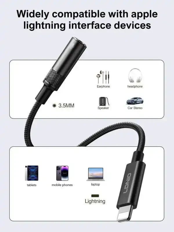Adaptateur casque Lightning LDNlO LS-Y80i pour systèmes audio, haute qualité, compatible avec tous les types d'iPhone