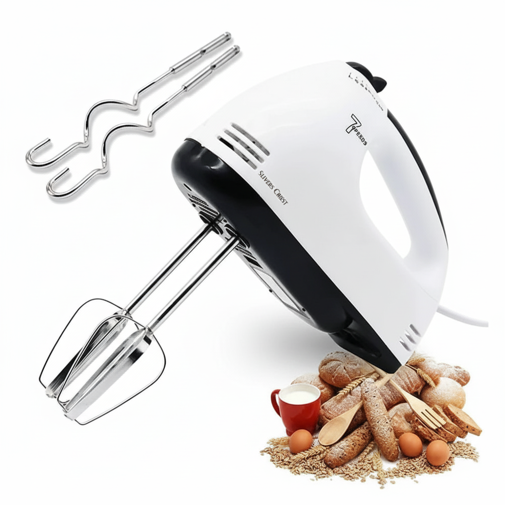 Batteur à Main SLIVERS CRIES SC-133 de 300W et 7 vitesses, avec fouets et crochets à pâte, essentiel pour la pâtisserie rapide