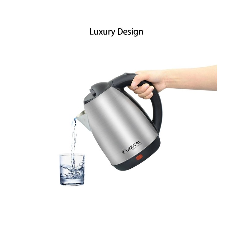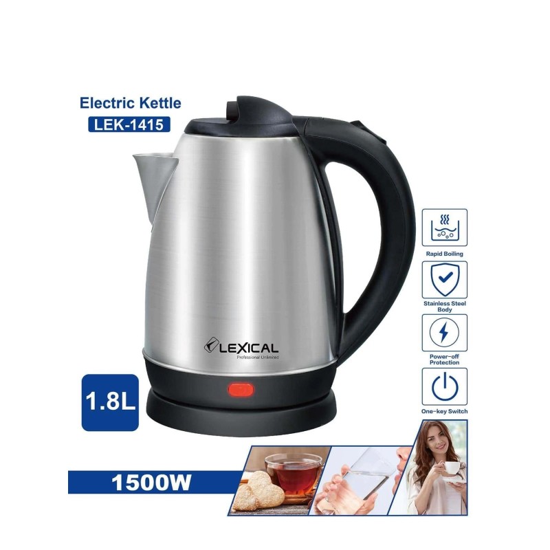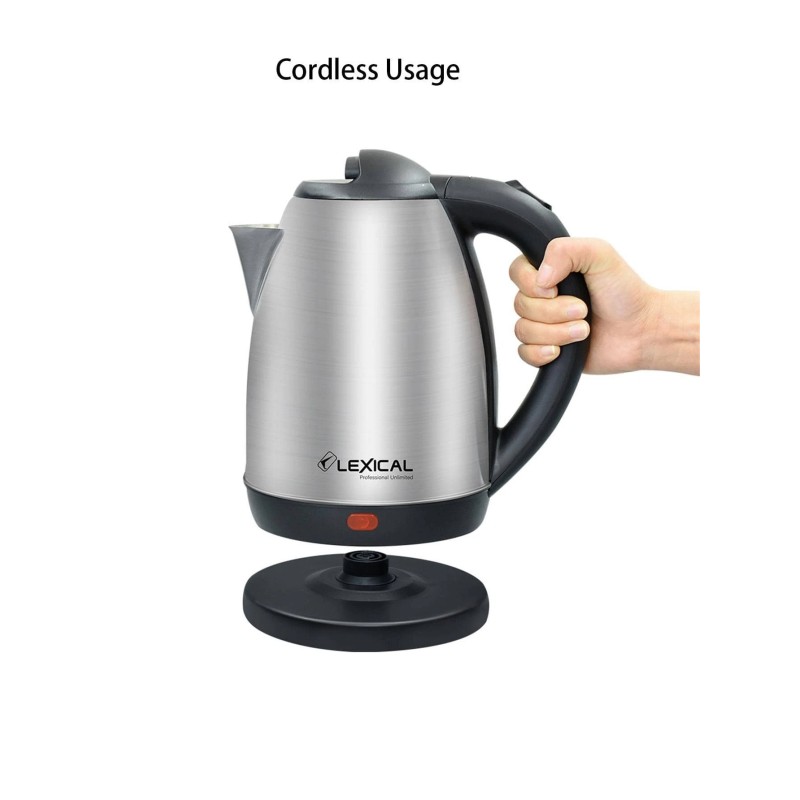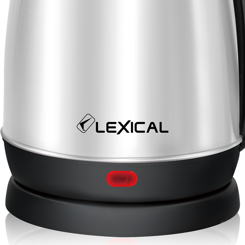 Bouilloire Sans Fil LEXICAL - Puissance : 2200Watts - Capacité : 1.8 Litres  - Matériau du corps : Inox - Alimentation : 220-240V~50Hz - Alimentation électrique sur socle pivotant à 360° - Arrêt automatique - Voyants lumineux de contrôle - Design moderne et ergonomique - Couleur : Inox - Garantie : 1 an