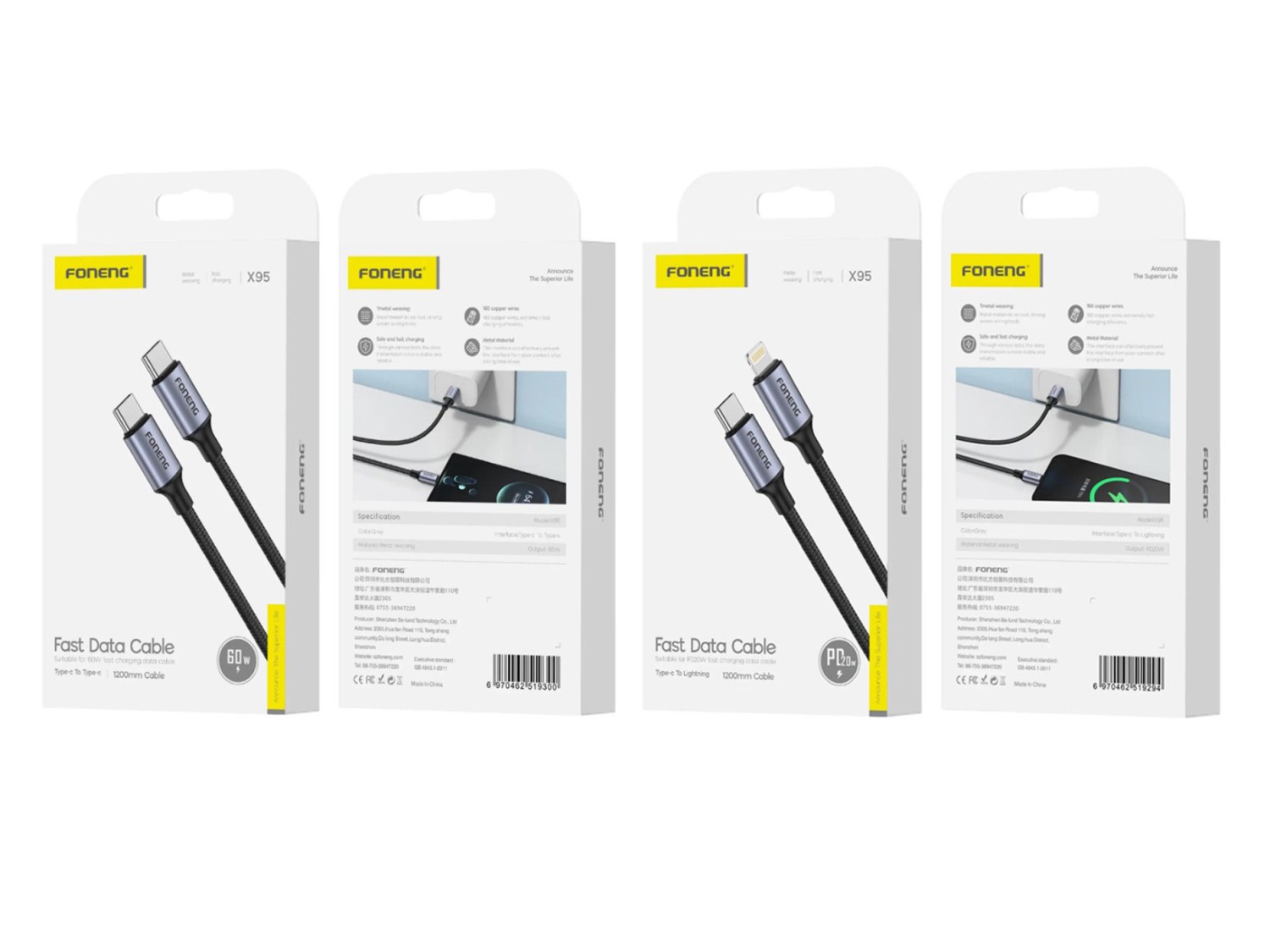 Le câble FONENG X95 – 1,2 m, tête métallique tressée (60 W / PD 20 W)