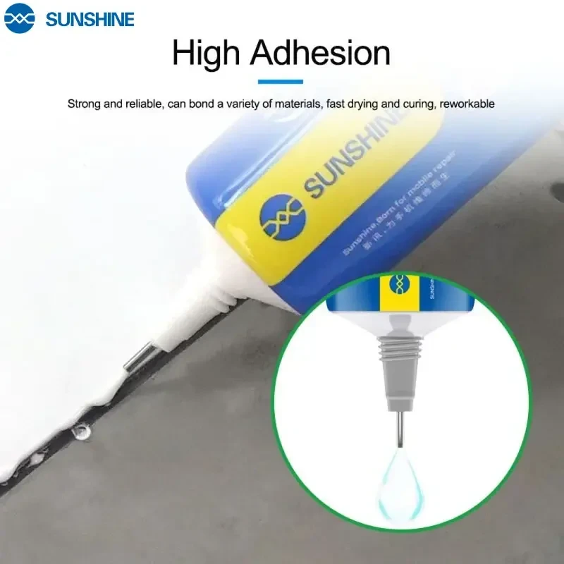 La colle SUNSHINE G-20 est une colle transparente et polyvalente conçue pour de multiples usages : réparation de smartphones, collage de bijoux, bricolage général, fixation d’écrans, etc.  Elle est formulée à base de polyuréthane.