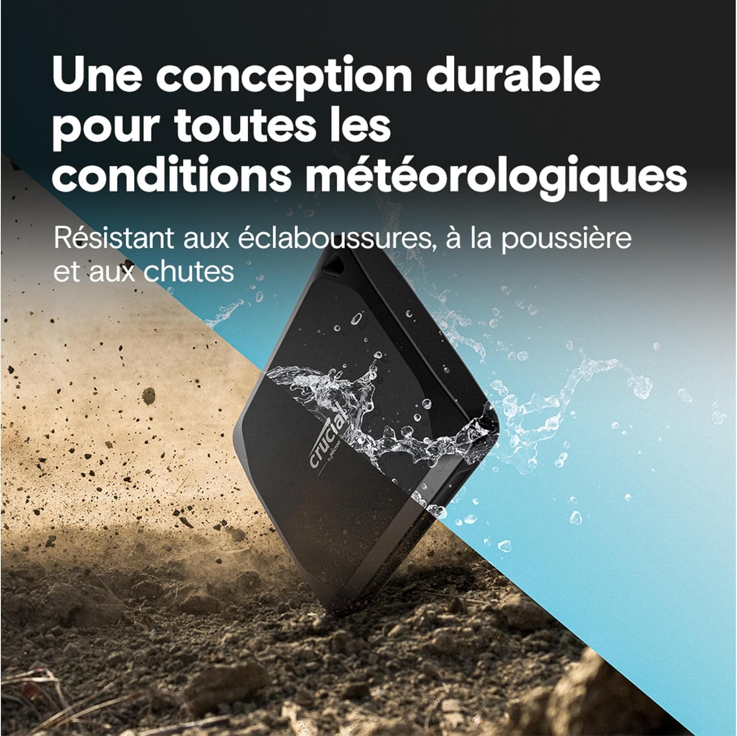 • La durabilité à toute épreuve: Contrairement aux disques durs portables fragiles, le SSD portable Crucial X9 est durable et fiable. Résistant aux chocs, aux vibrations et aux chutes jusqu’à 2 mètres, le X9 est également conçu pour résister aux changements de température.