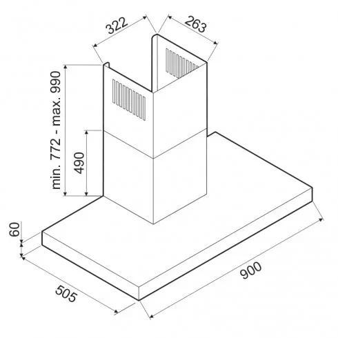 Hotte Focus Décorative - 90cm - Quadra 9010 - Inox