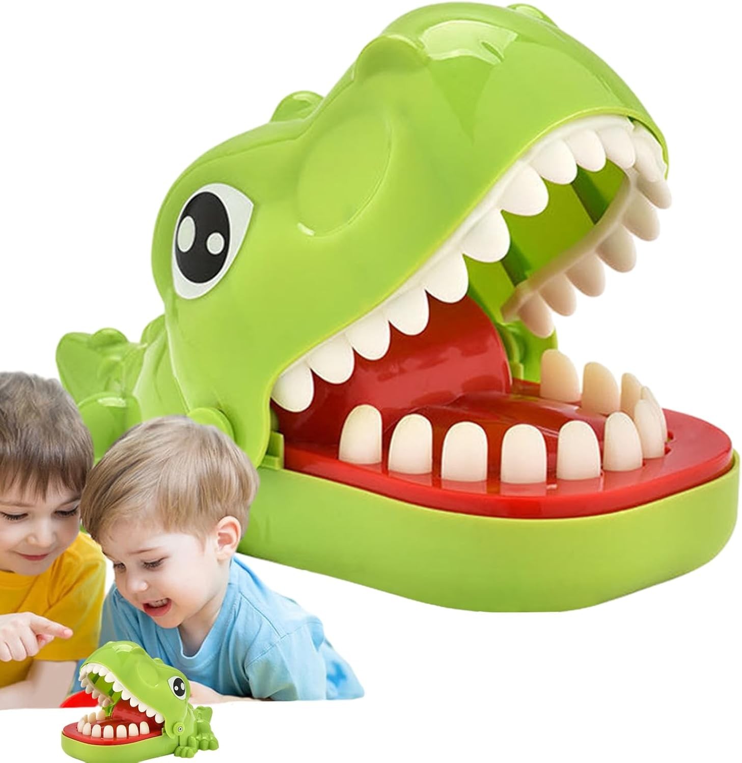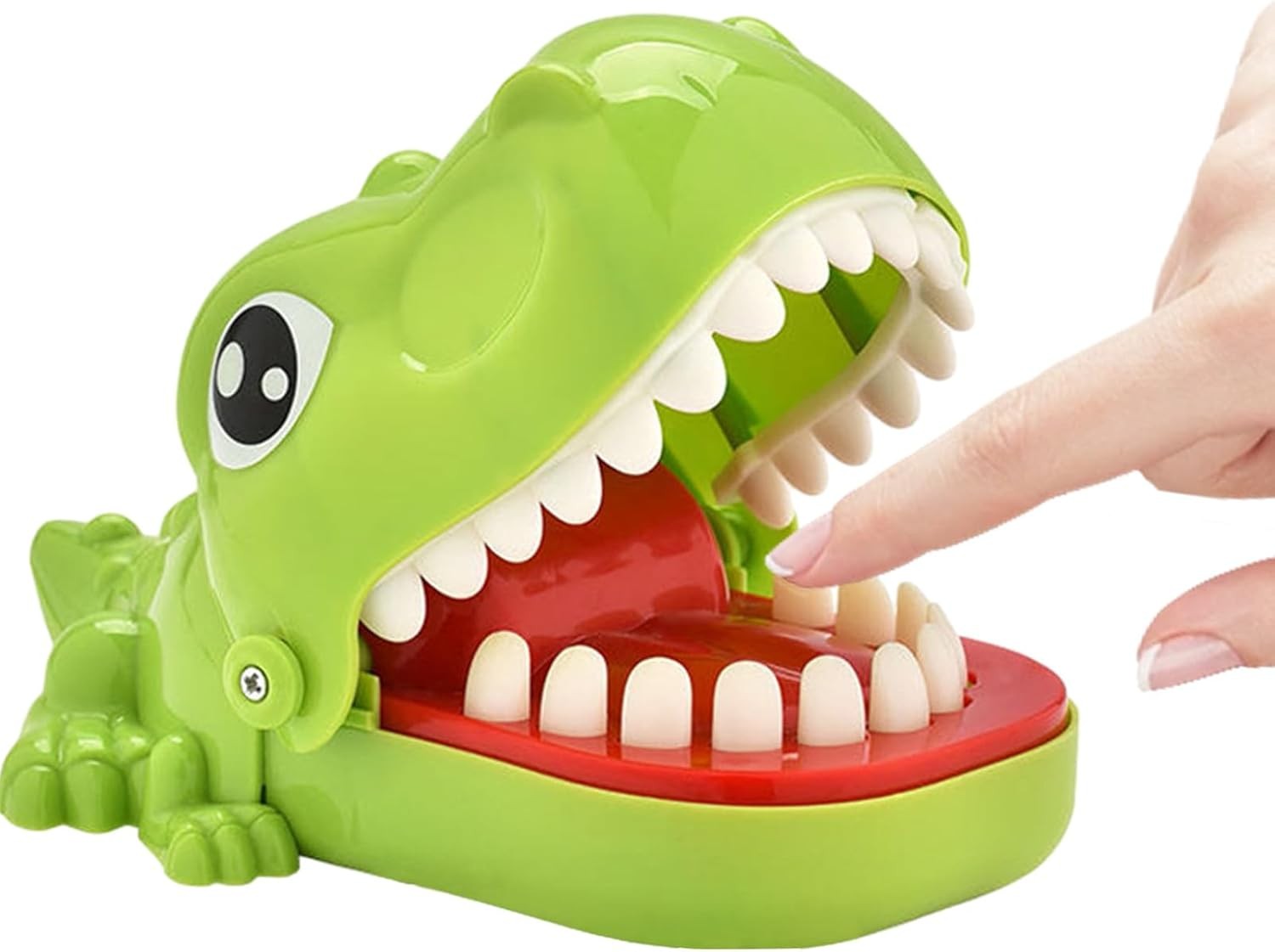 Ce jeu de dentiste dinosaure convient à plusieurs joueurs. Le dinosaure ouvre sa bouche et pousse les dents avec désinvolture, mais soyez averti, l'une de ces dents n'attend que de mordre. La bouche se ferme lorsque vous appuyez sur la « dent douloureuse ».