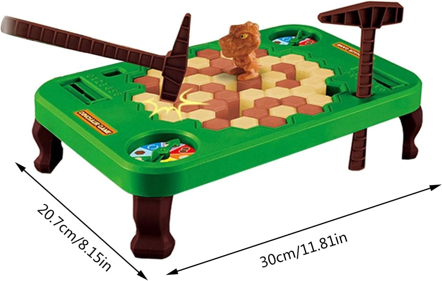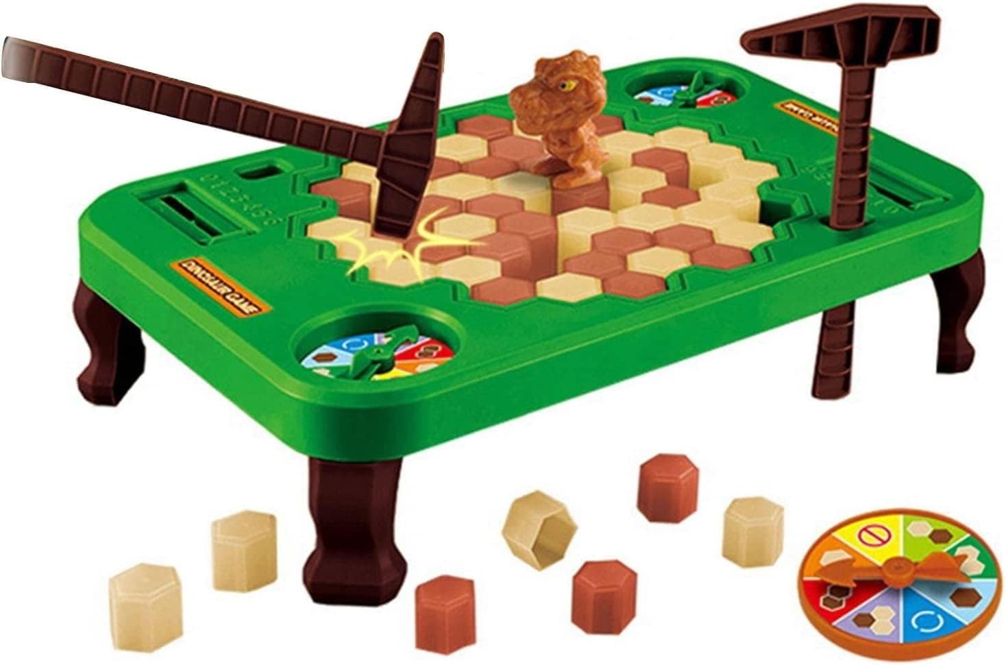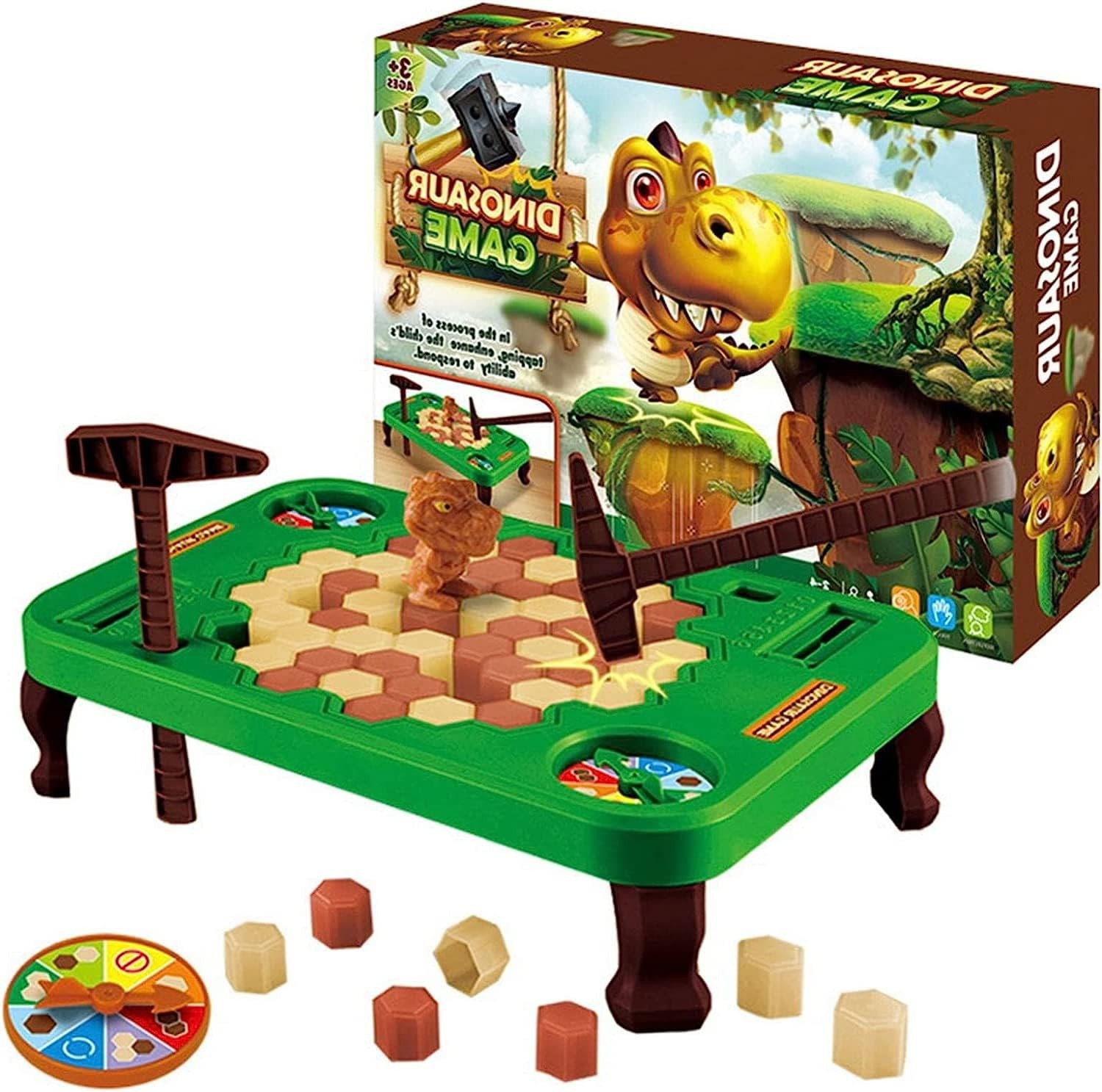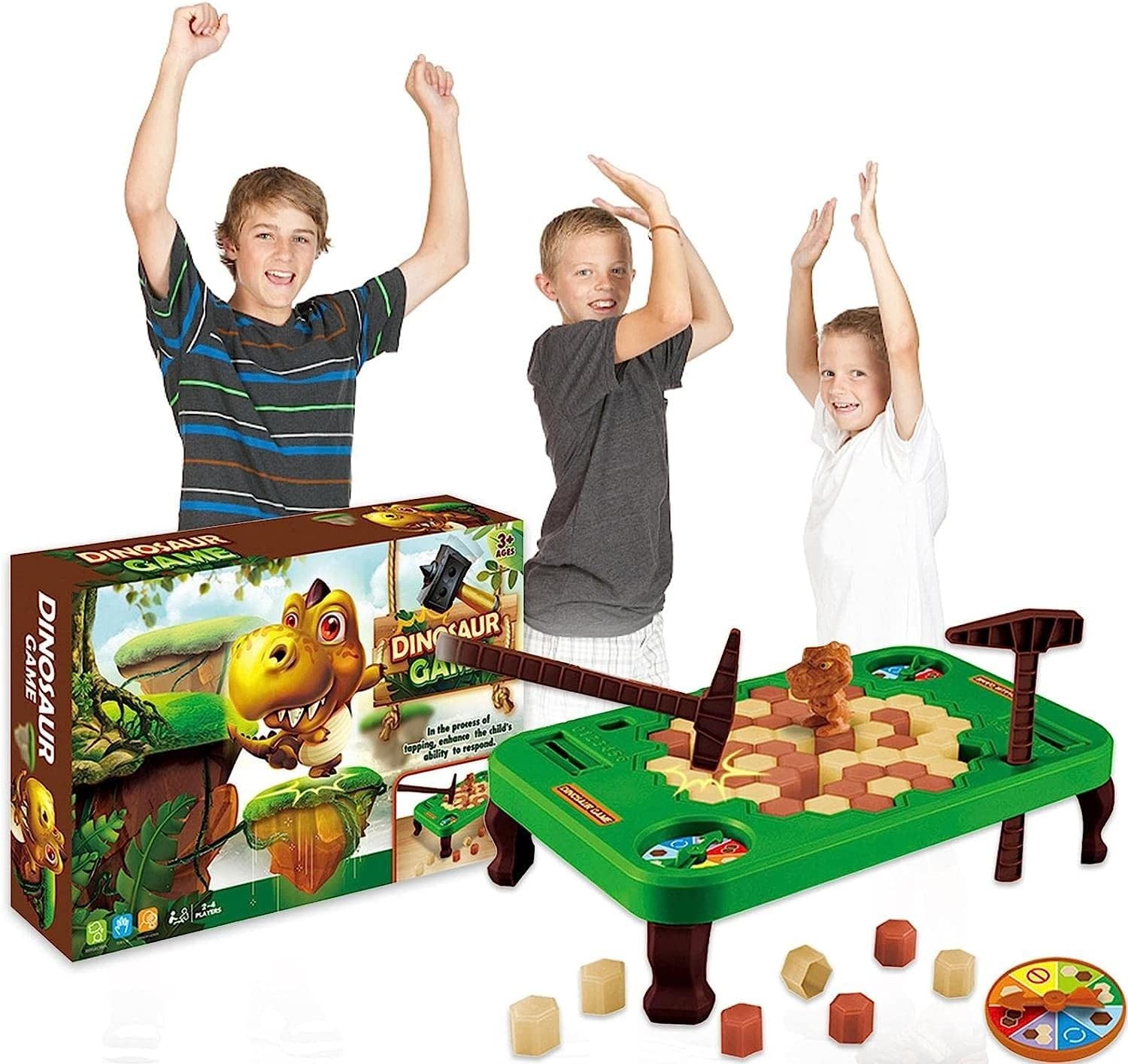Le jeu des dinosaures est un jeu dans lequel l'un des participants doit briser le bloc de pierre dessiné sur la roue, sans laisser tomber le dinosaure.