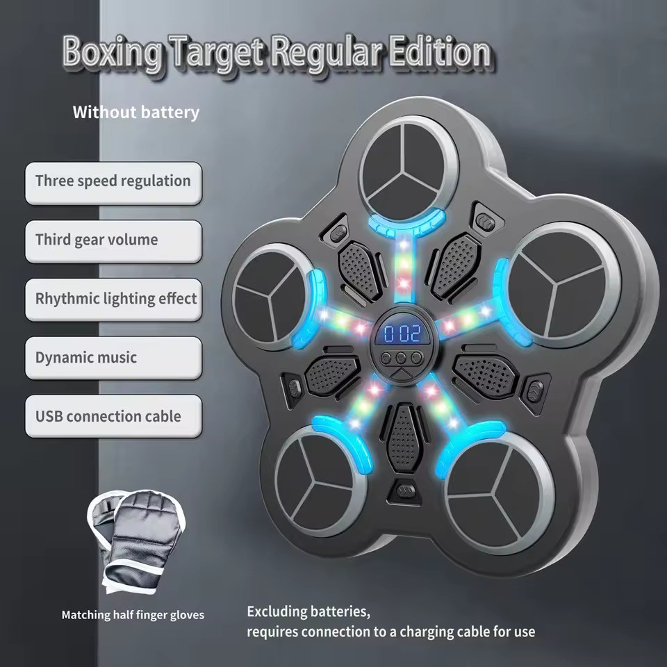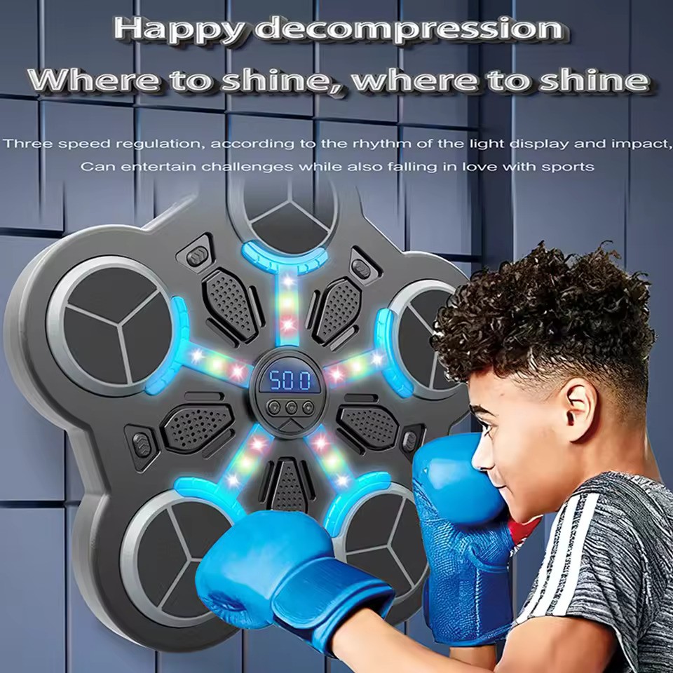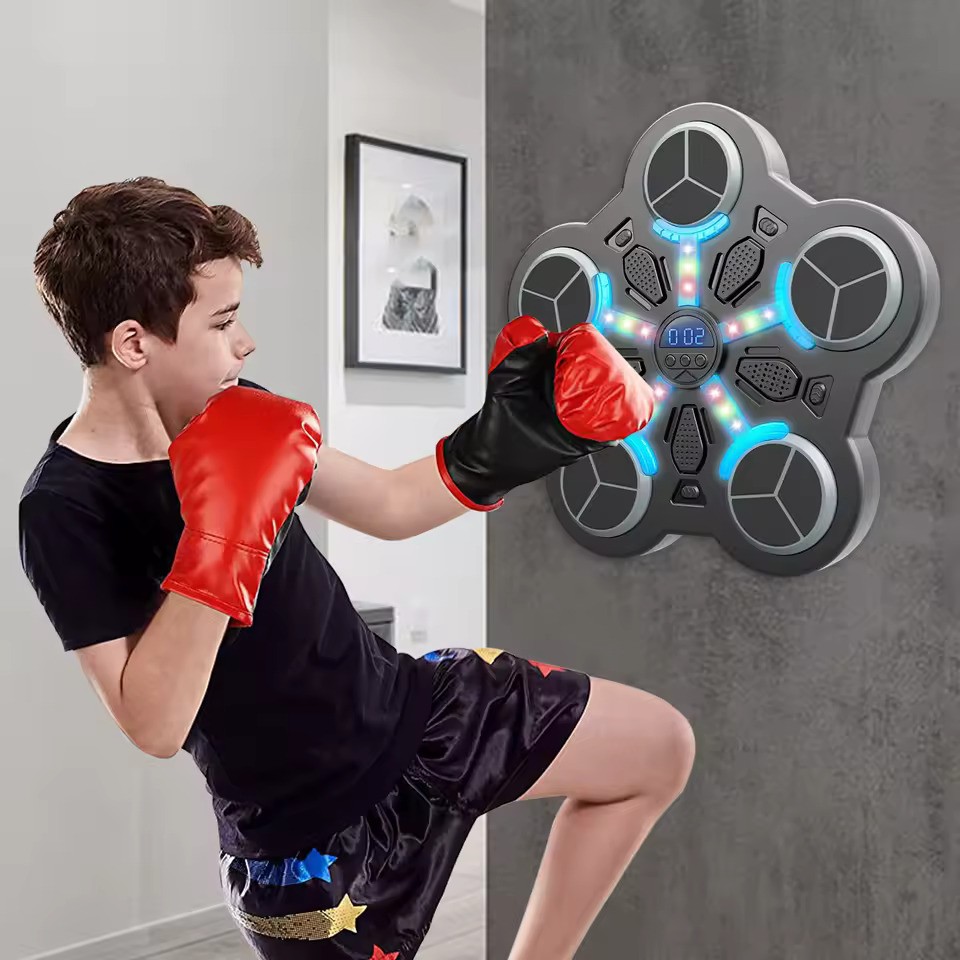 Bouclier de boxe mural avec musique et Bluetooth pour enfants de 8 ans et plus. Six zones de frappe, score électronique, exercices de défense et techniques de boxe. Facile à monter, idéal pour travailler sa vitesse, son endurance et ses enchaînements de coups à la maison.