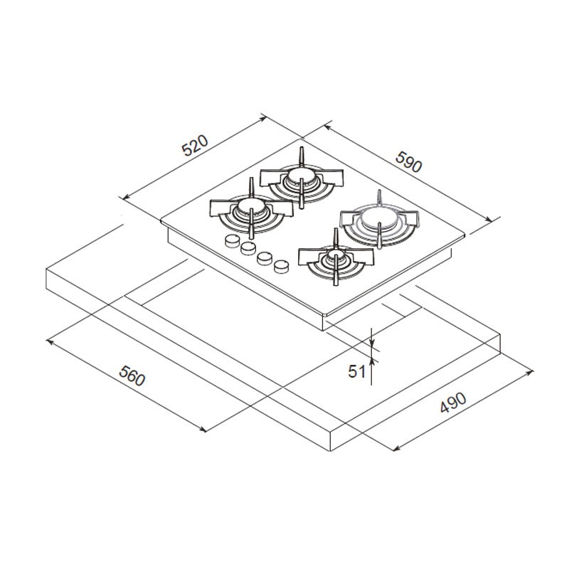 | Dimensions | H x L x P: 51 x 590 x 520 mm |