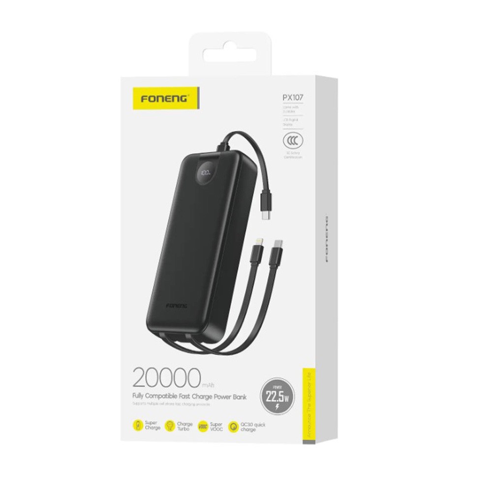 Power Bank PX107 20 000 mAh avec 3 câbles intégrés (22,5 W)
