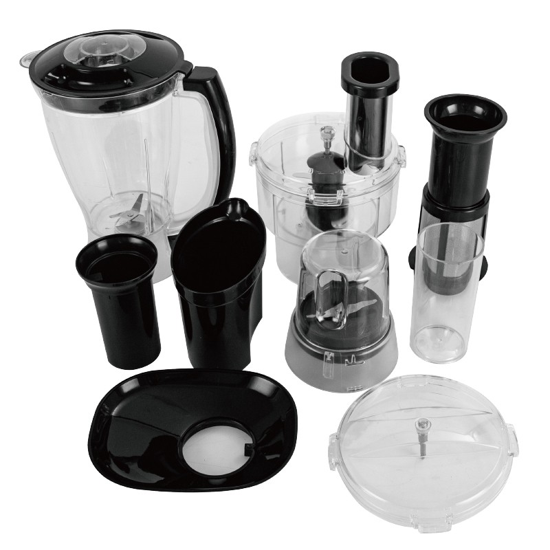 Robot Multifonction LEXICAL – Capacité du bol de découpe: 1,2 Litre – Capacité du bol mélangeur: 1,75 Litre – Deux vitesses avec fonction impulsion – Fonction d’extraction de jus d’agrumes – Lames en acier inoxydable – Trois types de disques de coupe pour les légumes – Structure en plastique de qualité – Moteur entièrement en cuivre – Garantie: 1 an