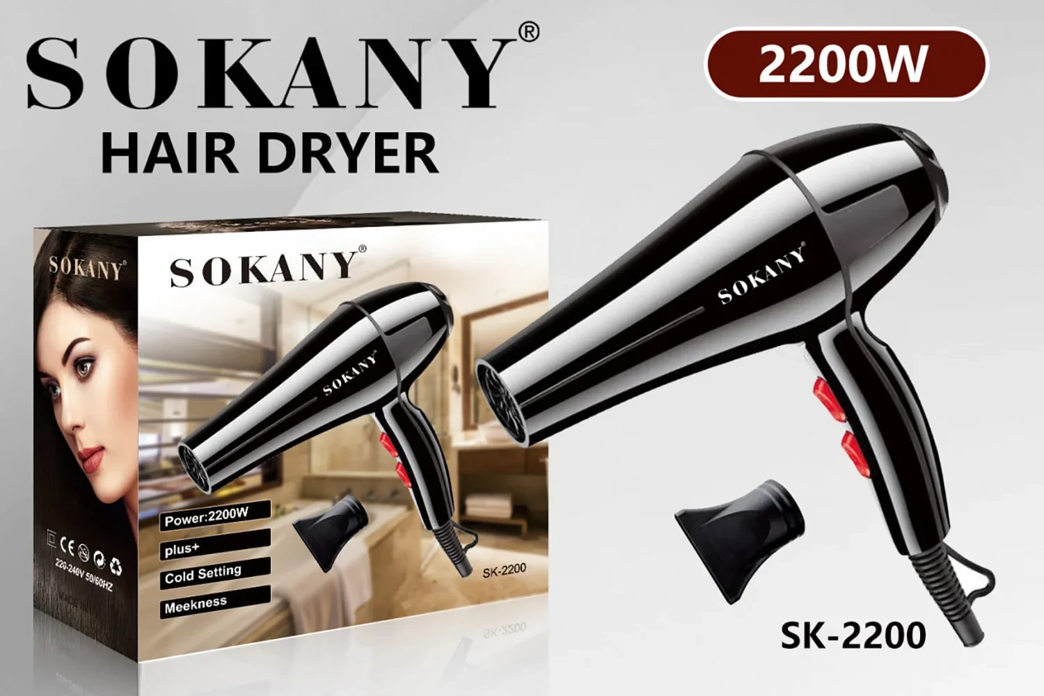 Sèche Cheveux Professionnel SK-2200 - 2200 W - Noir