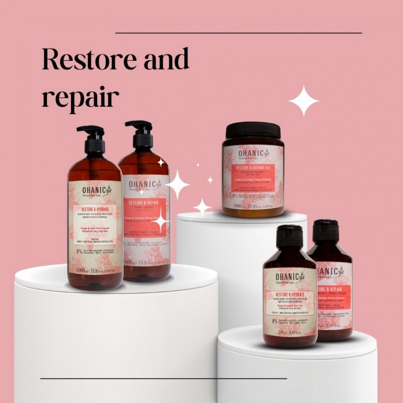 Le shampooing Ohanic Restore & Repair est un shampooing réparateur spécial, est formulé avec des extraits de raisin et de fleur d'oranger, parfait pour réparer en profondeur les cheveux secs et abîmés.