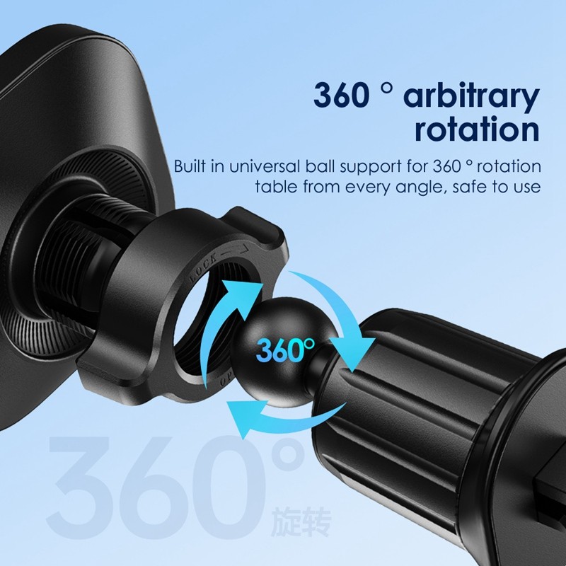 -Fixation : clip sur la grille d’aération du véhicule (“air outlet clip”).